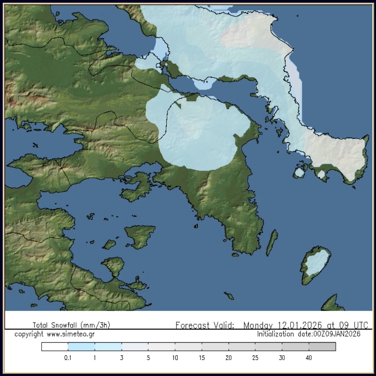 Όλα τα προγνωστικά μοντέλα συγκλίνουν στο ότι η Εύβοια θα βρεθεί στην πρώτη γραμμή της ψυχρής εισβολής. Ο ορεινός όγκος της Δίρφυς αναμένεται να λειτουργήσει για άλλη μια φορά ως «μαγνήτης» των φαινομένων.